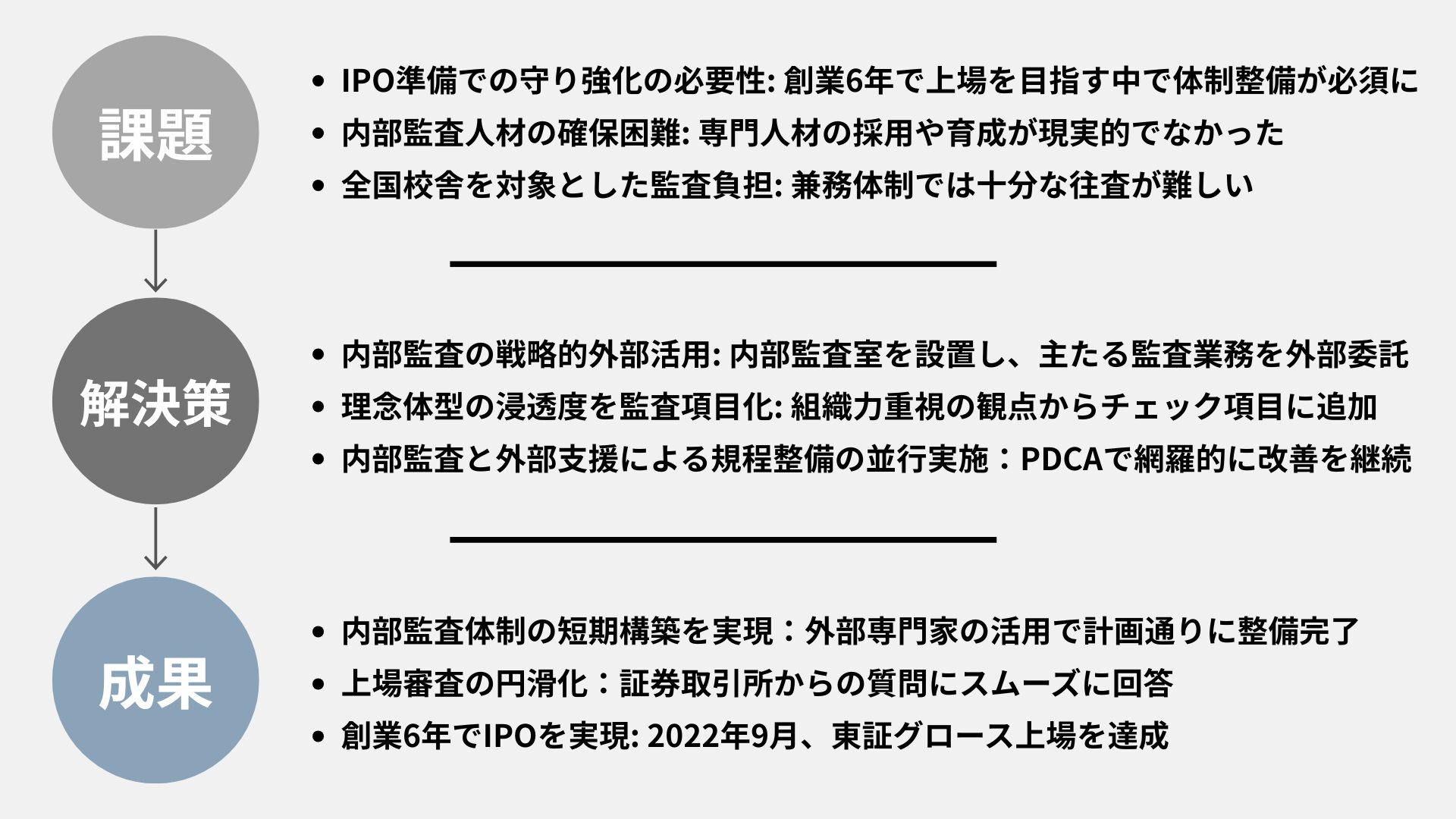 外注と内製を機動的に使い分け、IPOを実現。内部監査の責任者が交代しても、十分な品質を担保する
